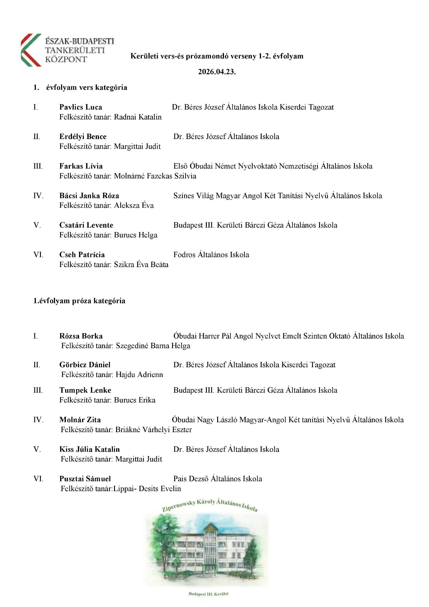Szeretnénk kiváltképp elismerni Loor Veronika tanító és alsó tagozatos munkaközösség-vezető példaértékű hozzáállását, hiszen közösen alakítjuk ki azt az új szakmai szemléletet, amelyben pedagógusok, edzők, szociális munkások és szülők teammunkában dolgoznak a gyermekek sikeres felnőtté válásán, valamint testi-lelki egyensúlyuk fejlesztésén.